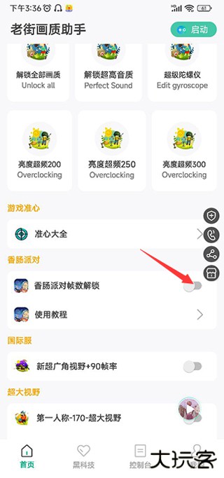 1、首先下载安装好老街画质助手120帧,运行游戏,之后开启香肠派对帧数悬浮窗。