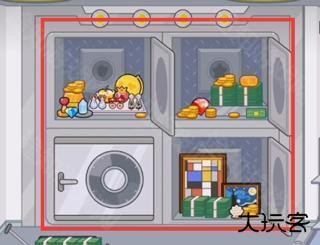 来到银行二楼,打开保险柜,根据图形找到钻石,红心,星星以及贝壳并依次放入,保险柜就会打开,里边有很多宝物。