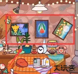 来到三层别墅,依次把客厅的三幅画摆好,摆到和阴影重合就可以解锁录音棚。