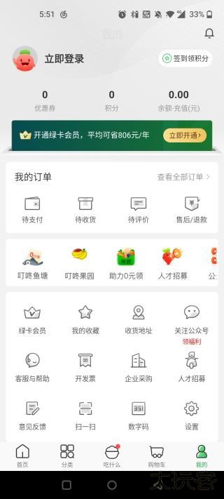 1、打开叮咚买菜app,点击右下角我的,然后点击-我的绿卡