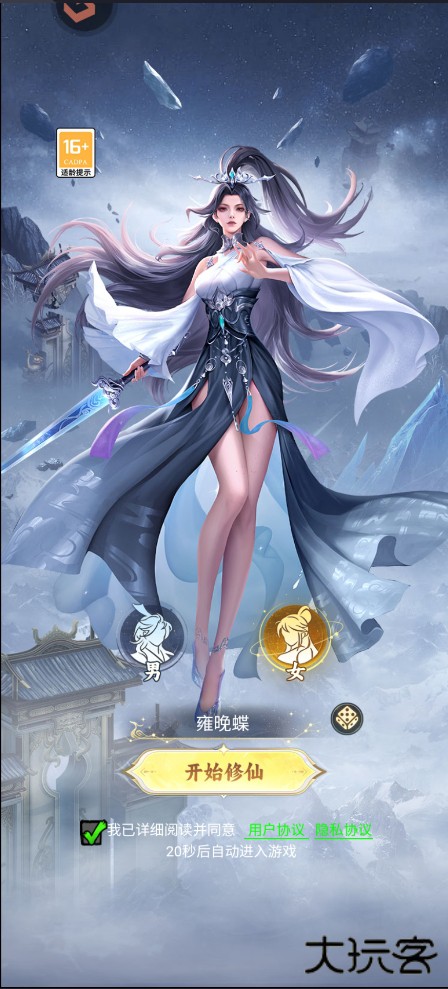 2、创建角色身份,再为自己取一个ID之后点击开始修仙;