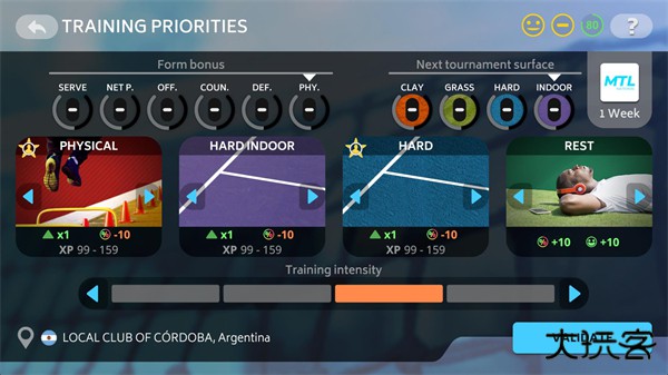 6、加入俱乐部后就可以开始训练了,你可以自由决定不同的训练项目。