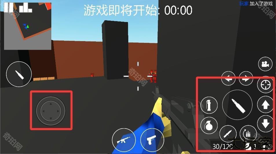 3、左边虚拟摇杆控制人物走位,右边按键负责开火和切道具,遇到掩物记得蹲下,手雷要算好抛物线再扔。