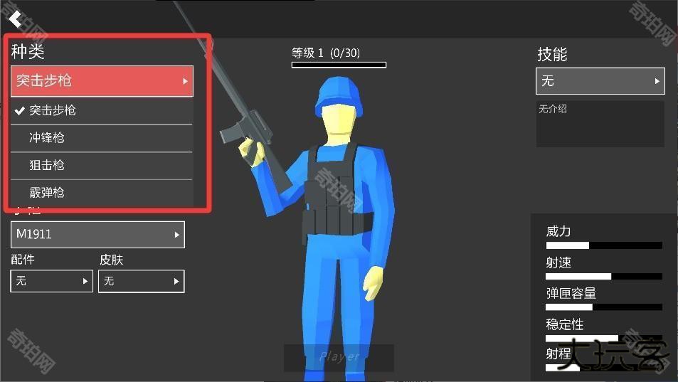 2、选完模式会进入装备界面,步、狙击、手雷都能用,刚开始用默认的突击步就行,后坐力小容易上手。