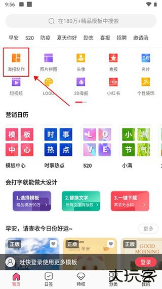 1、首先下载安装图怪兽app,并打开app,在显眼的位置处,点击海报制作。