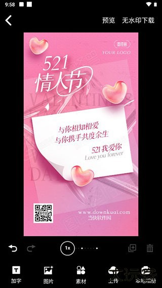 3、根据自己的想法,可以进行海报的图片添加、更换,文字的替换、新增等等,同时还有一系列小挂件等素材库等你来搭配选择。