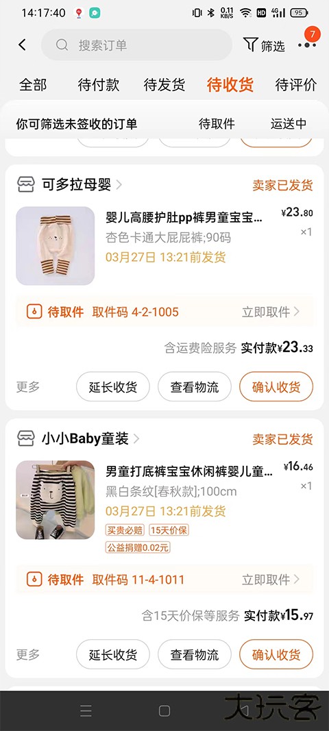 3、进入到待收货页面之后,选择你要退款的商品点击进入;