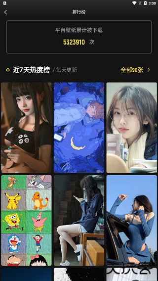 2、排行榜页面查看热门壁纸。