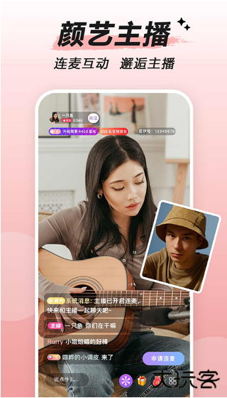 1、多元社交互动:支持文字私信、一对一语音/视频通话、娱乐直播、家族群聊及心情动态发布(可发布文字、图片、视频),覆盖陌生人社交全场景。