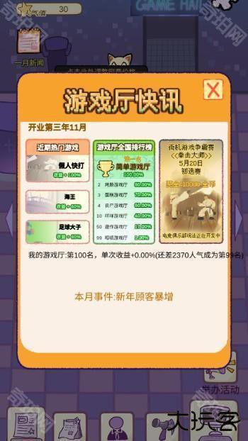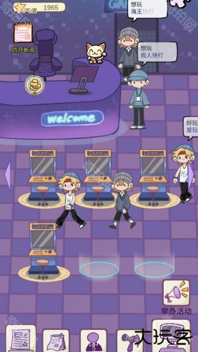可以通过点击特定按钮来购买新游戏,丰富游戏厅的游戏种类,让顾客有更多选择。可以不断优化和调整经营策略,逐步提升游戏厅的人气和收益,最终实现从小型店铺到大型娱乐帝国的目标。