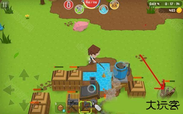 2、做好钓鱼竿后,我们就来到水池旁边,正面对着水池,一直按住钓鱼竿就可以钓鱼了,必须要一直按住才行哦