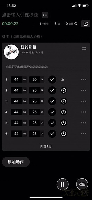 2、如果你需要记录休息时间,可以单击每一组后面的“小时钟”按钮。这样可以帮助你精准追踪每次训练后的休息时长。