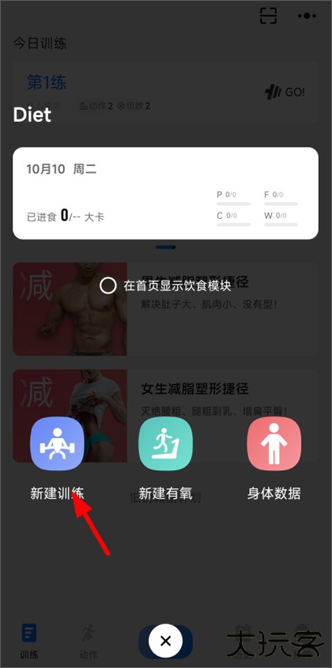 2、打开训练计划,点击新建训练;