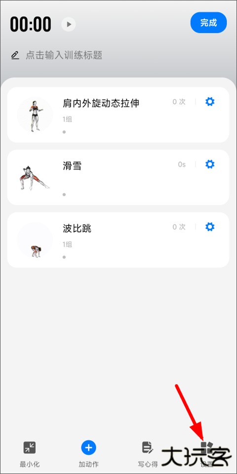 5、训练动作添加到计划中后,点击右下角设置,选择保存返回,即可在训练首页查看训练计划。