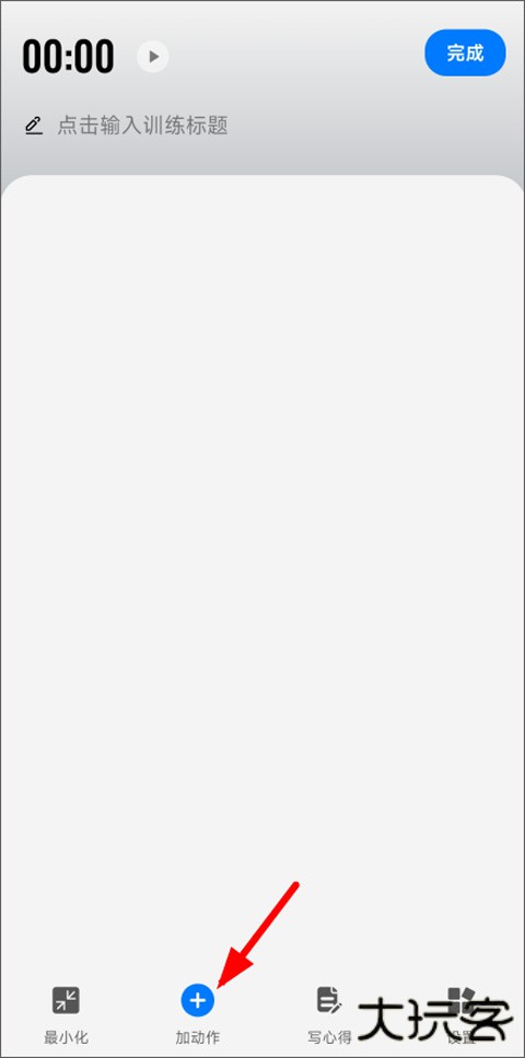 3、输入训练标题,点击下方工具栏中加动作;