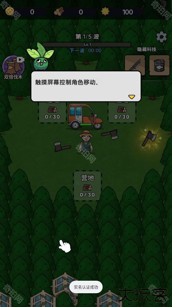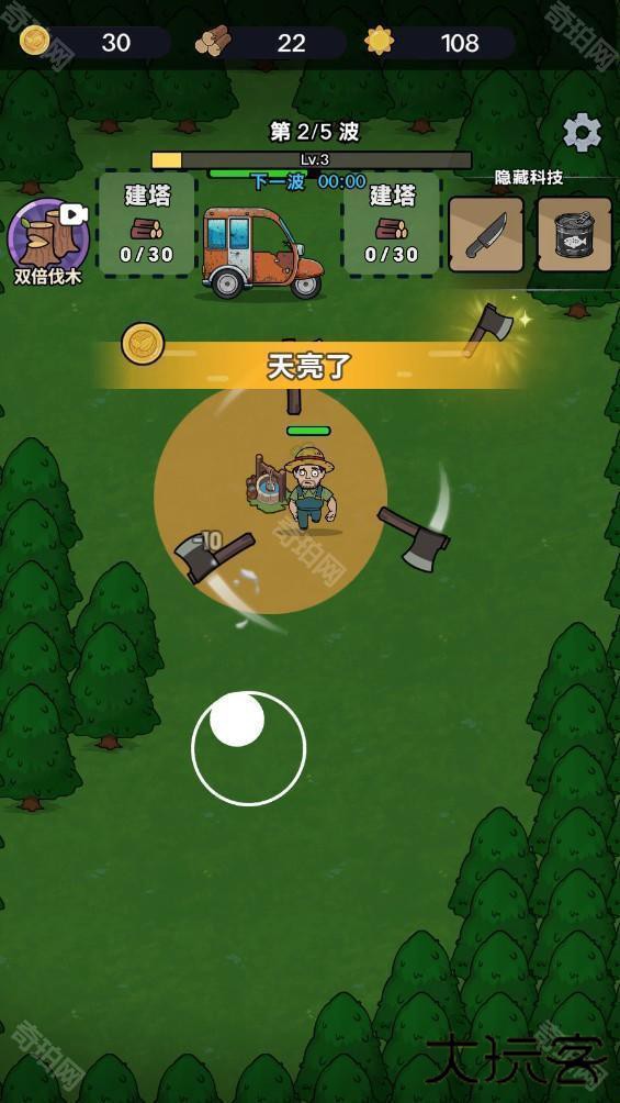 2.使用斧头砍伐树木,收集木头扩张营地。