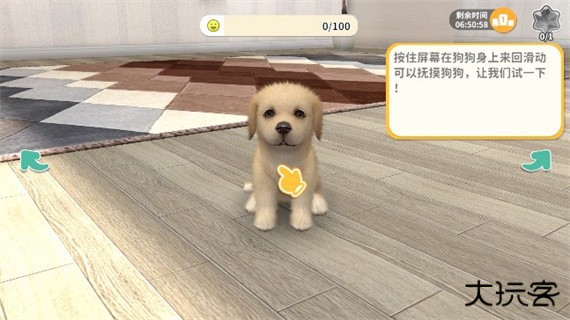 5、完成之后,可以跟小狗互动,按住屏幕来回滑动即可抚摸小狗。
