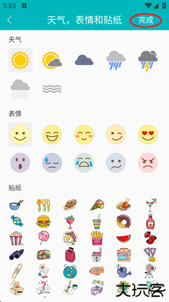 4、点击贴纸处可以多设置贴纸表示天气、心情等