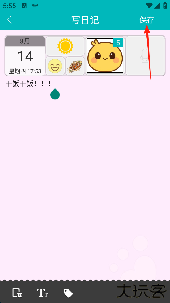 8、最后点击界面右上角的【保存】,就能完成了日记创作。