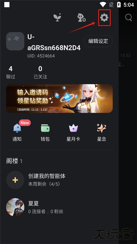 1、打开星野ai,点击右上角的头像按钮。