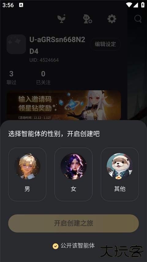 3、选择智能体的性别,开启创建吧。