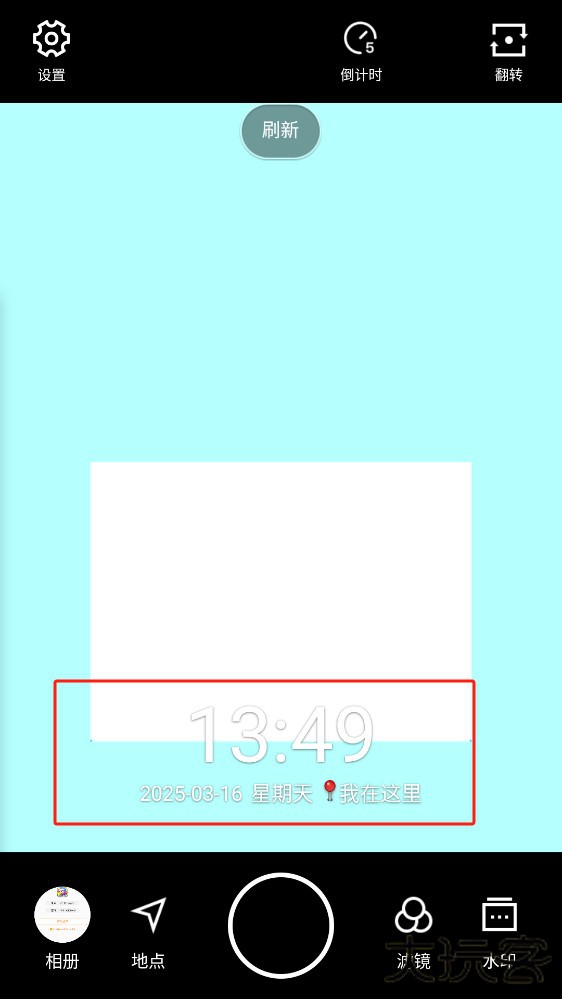 1、打开真实时间水印打卡相机app,选择“水印相机”功能或者点击拍摄按钮,进入拍摄界面