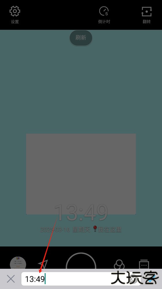 2、在拍摄界面,找到并点击“日期”、“时间”或“地点”选项