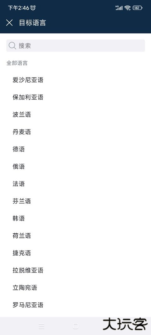 3、选择想要翻译出来的目标语言。