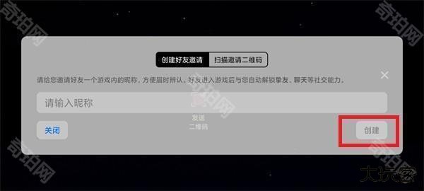 4、在创建好友邀请界面,在其中输入【好友昵称】然后点击【创建】就可以去进行添加;