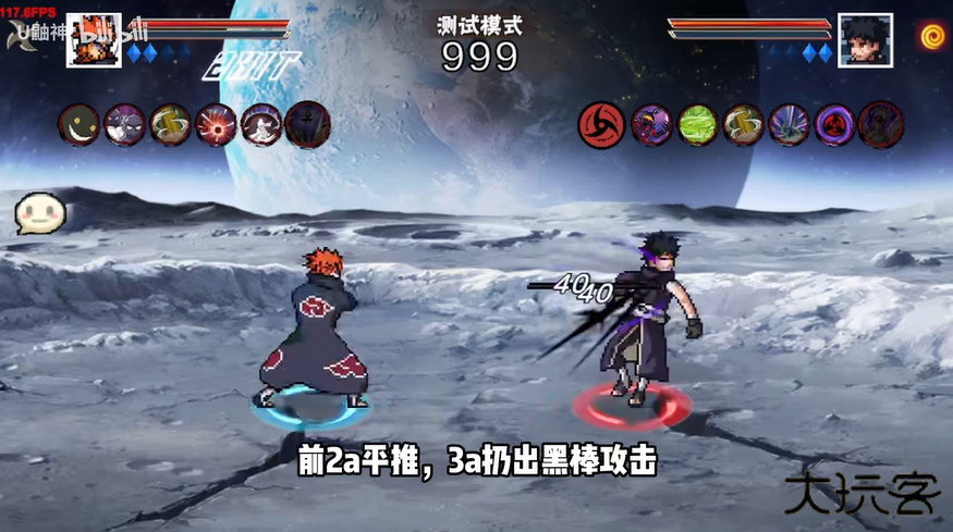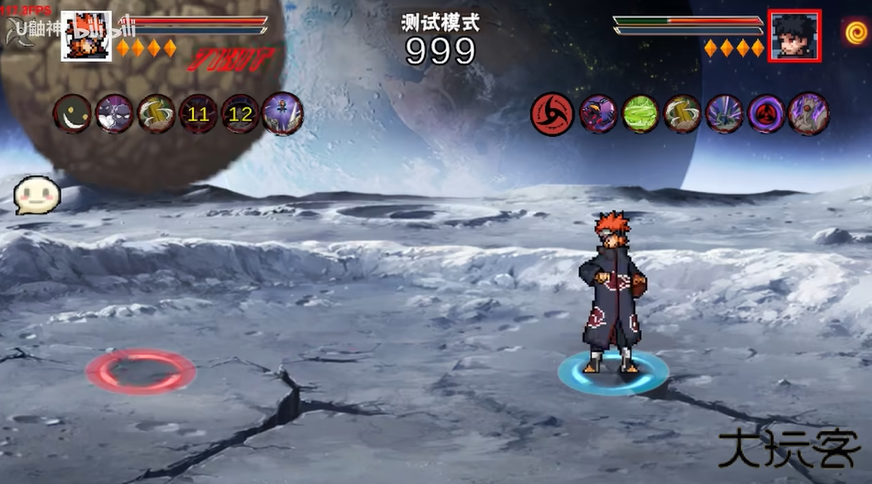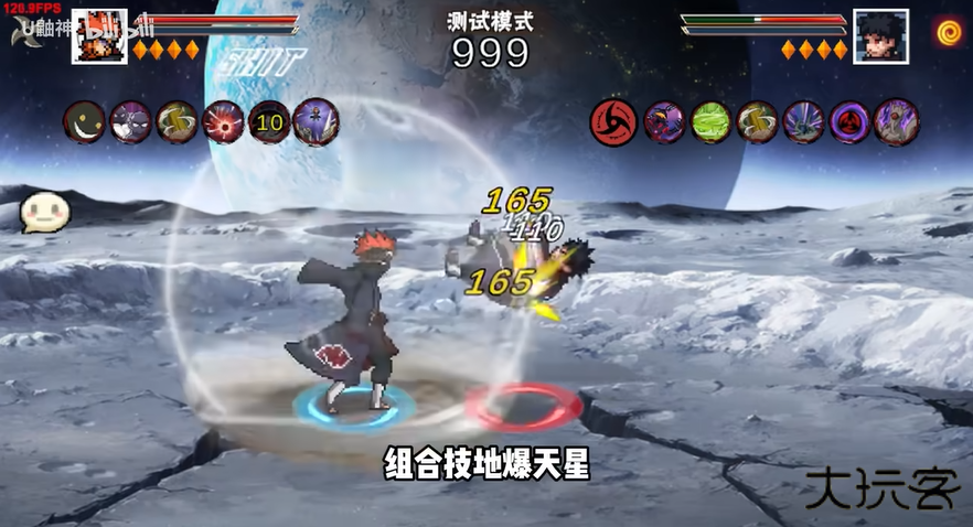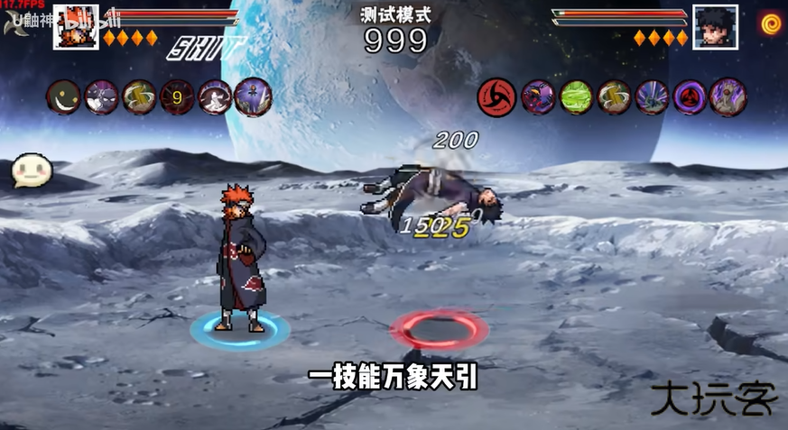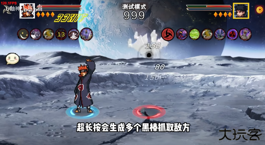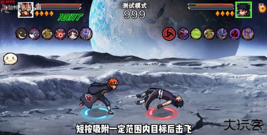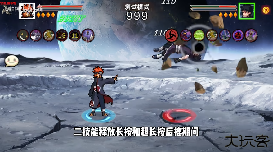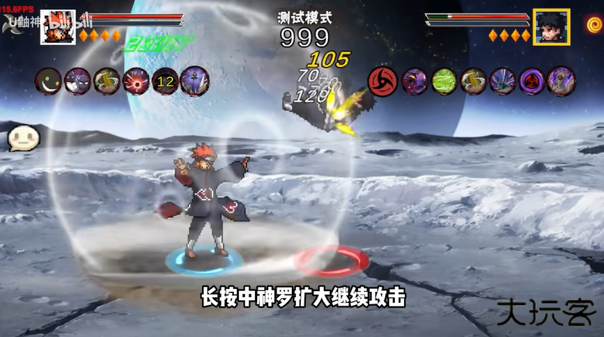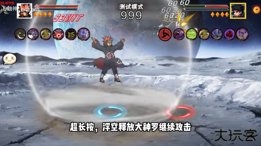 3.二技能神罗天征,短按小神罗攻击,长按中神罗扩大继续攻击,超长按浮空释放大神罗。