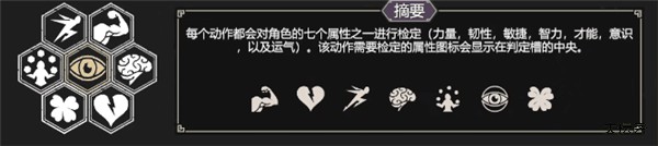 游戏中勇士们需要执行不同的动作,例如潜行,伏击等,均会有着不同的“判定结果”与“判定几率”。