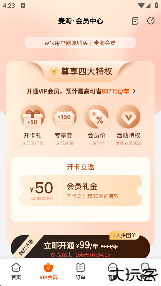 1、会员服务体系:提供“麦淘一卡通”预约权益,涵盖酒店、乐园等多元场景。