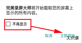 2、选择玩竖屏或横屏后,app会提示权限,我们可以勾选上“下载显示”然后点击立即开始