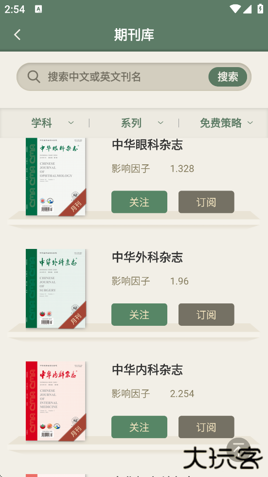 2、海量资源覆盖:整合中华医学会系列期刊及部分SCI内容,学科分类精细(如内科、外科等30余专科),影响因子筛选功能提升文献定位效率。