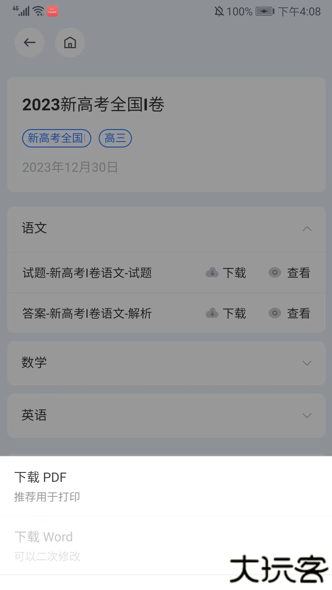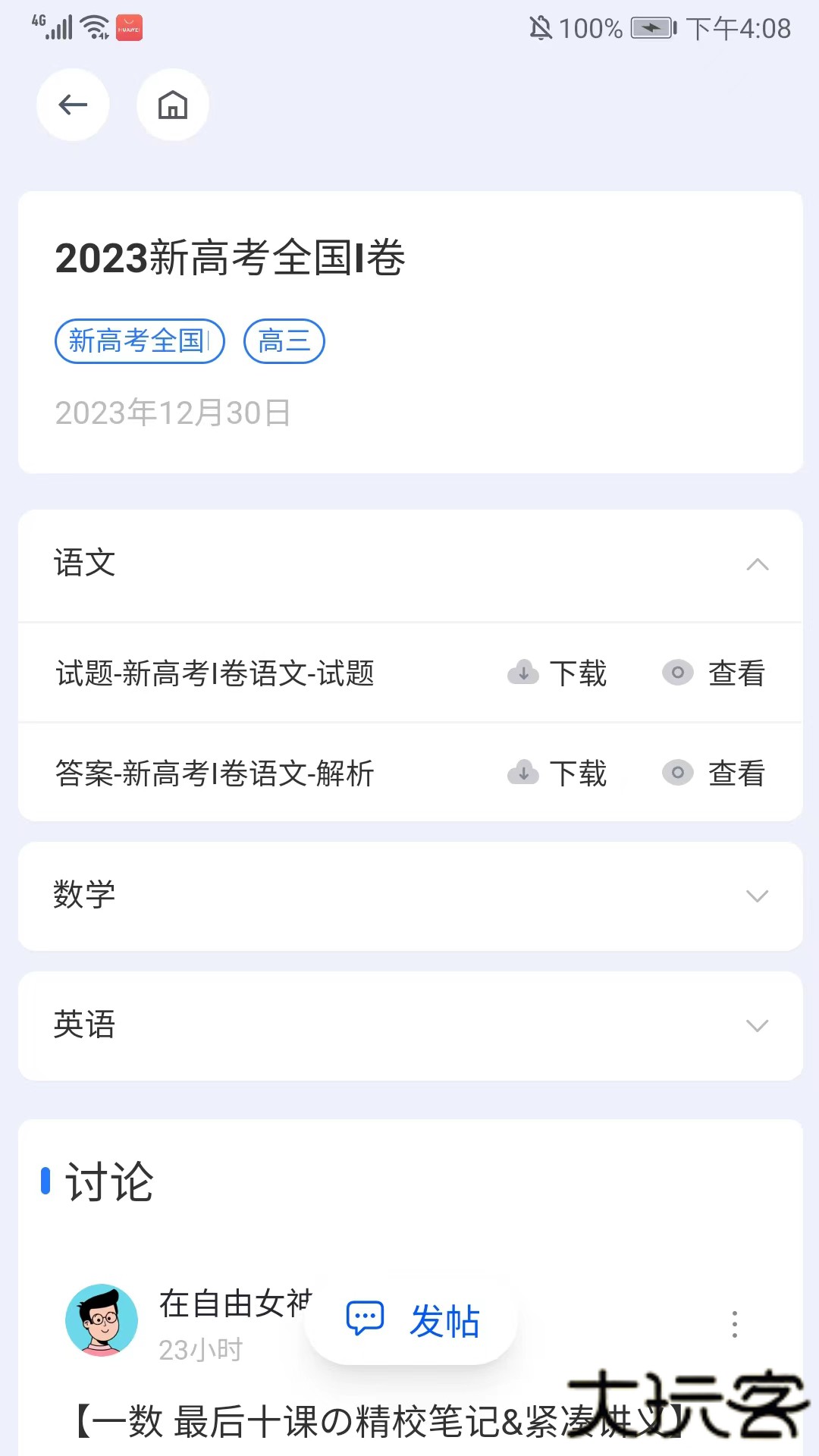 2、可看到全部的试卷资料,选择需要的试卷即可,这里以新高考全国I为例,