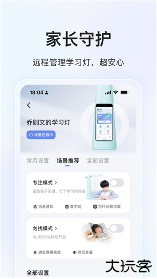 护眼设置:绑定后进入「台灯管理」调整亮度、色温及坐姿提醒。