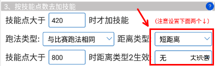 b.【育成】中的距离类型,要根据出战马设置