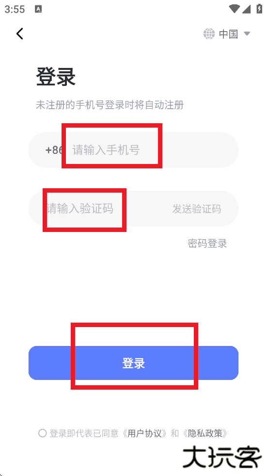 2、输入手机号获取验证码进行登录。