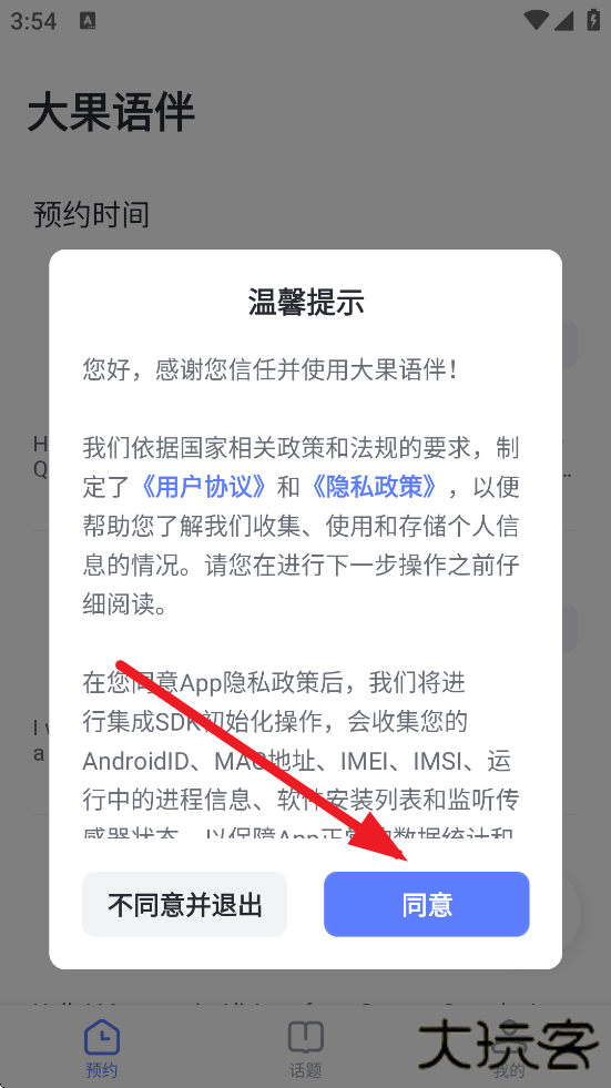 1、打开软件,点击“同意”。