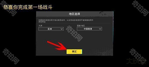 5、进入游戏后,根据自身情况选择地区,然后点击确定按钮;