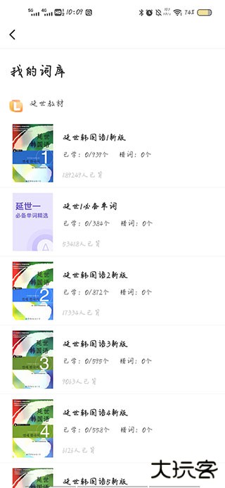 2、点进去之后,页面上会显示很多不同分区的词库,有延世教材,常用词库等,如果需要备考韩语就可以选择考试词库了。