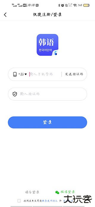 1、先从本站下载好羊驼韩语app,下载完成后,打开app,新用户需要实名验证的手机号码。