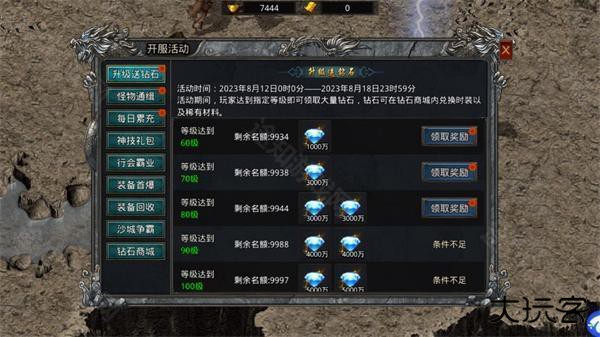 1、新手入坑参与开服活动,升级完成对应的活动之后领取大量奖励。