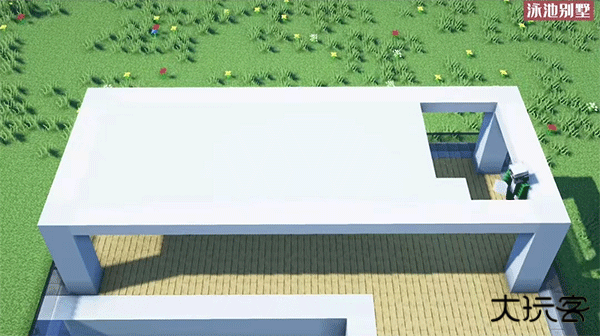 5.蓝色玻璃做到一面墙,然后下面放置树叶装饰。