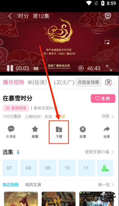 2、点击如图所示的下载按钮,然后点击需要下载的集数即可