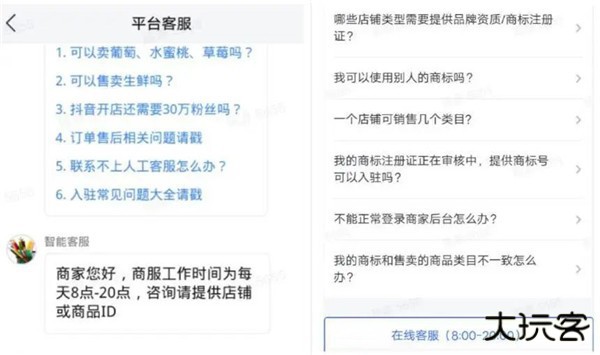 4、在“我的”页面,有“我的客服”、“商家中心”和“设置”三个功能模块。“我的客服”提供平台客服服务,解决商家在日常运营中遇到的问题。若有疑问,可以直接提问,客服将在8:00到20:00之间进行回复。“商家中心”可以直接进入“帮助中心”,商家可针对营销、推广和关店等问题进行搜索,获取所需帮助。