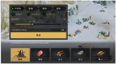 通过主城里的农场采石场伐木场为帝国生产足够的建设资源是远远不够,我们必须出门去找资源。