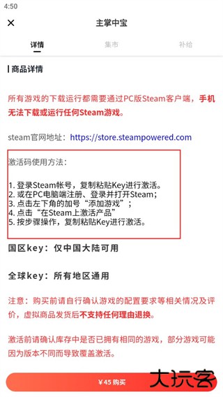 2、进入游戏详情页面后,点击最下方的购买选项