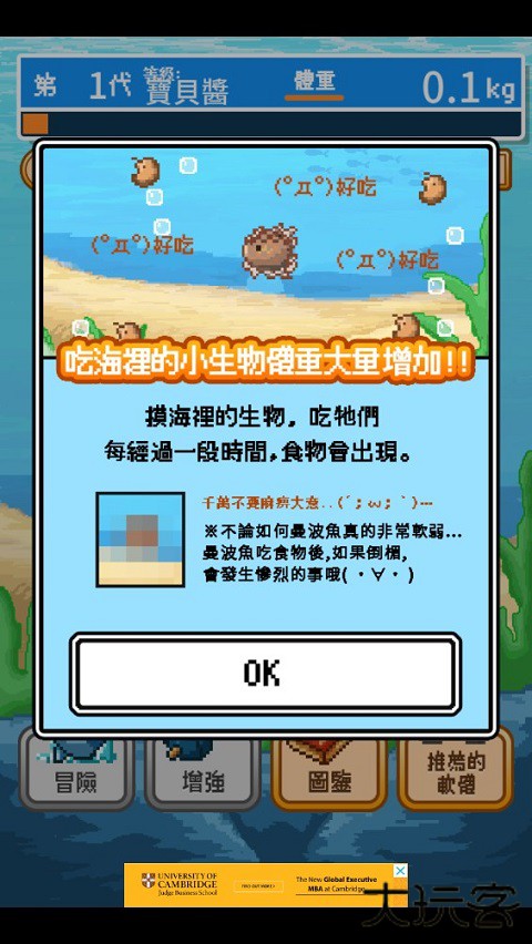 3.通过吞食海洋生物不断进化,但请注意,曼波鱼天生脆弱,稍有不慎便可能前功尽弃。玩家需勇敢尝试,在一次次的冒险中解锁新内容——每一次“意外结局”,都可能带来意想不到的欢乐。