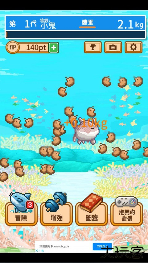 3.快速进化,越挫越勇,每一次死亡并非终结,而是新故事的开始。玩家可在反复尝试中不断强化曼波鱼,有效提升成长效率,加速实现终极进化。